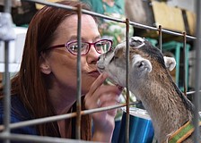 Mary Freeman bids on a raffle item for the Best Grandmother package, which included children's books and movie tickets.