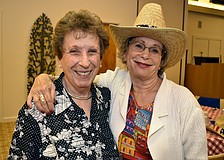 Geri Schwab tries on a new, healthy lipstick from the Lip Loft booth during Wine, Women and Wellness.