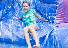 Southside Elementary Student Kyle Kenny watches the eclipse through solar eclipse viewing glasses.