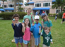 Children run to collect eggs during the final hunt of Bayside Community Church's EGGolution.