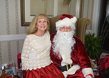 Jeanne and John Larranaga, or Mrs. Claus and Santa, pose with Hannah and Haven Wood.