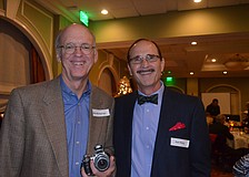 Democractic Club of Sarasota President Mary Clupper with guest speaker Neil Phillips.