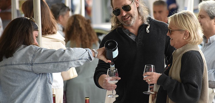 Patron Disha Webb tries on a ring crafted by artist Julia Bernadsky at last weekend's fine art festival on St. Armands Circle.