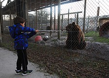 Tampa's Noah Burdette, who is 3 years old, launches himself through an inflatable creature.
