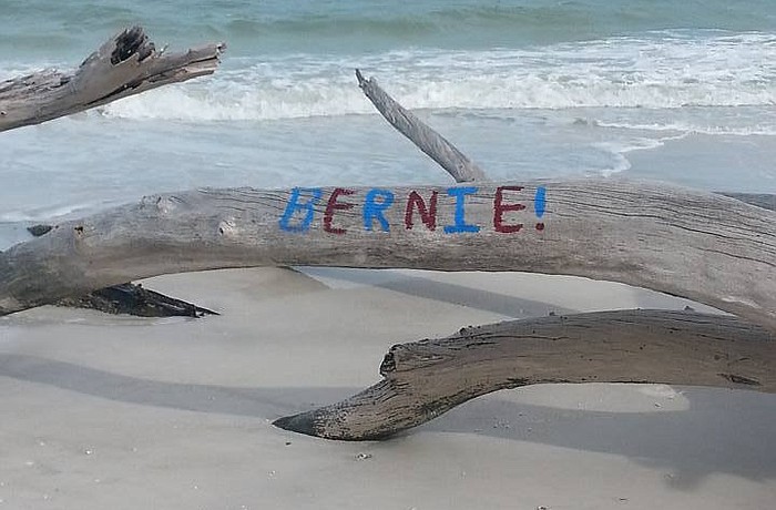 An unknown suspect vandalized driftwood trees on north Longboat Key with messages in support of presidential candidate Bernie Sanders this weekend.
