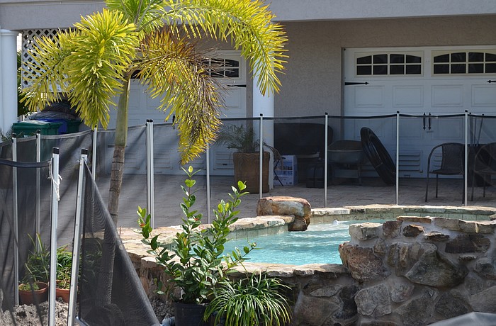 A fight over landscaping left one resident in the pool and another facing possible battery charges.