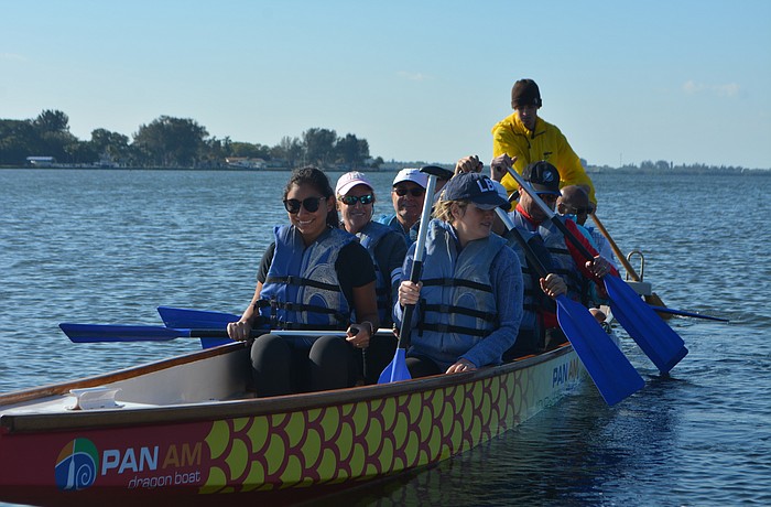 Longboat town employees practice for dragon boat race vs. local rivals