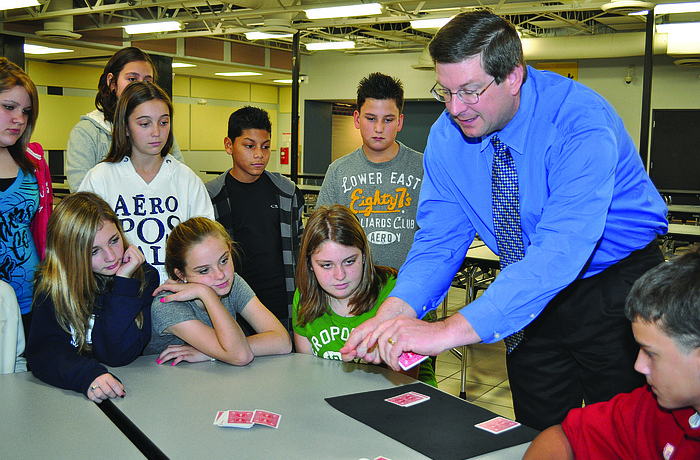 McIntosh Middle Principal David Jones builds relationships with students by enchanting them with his magic prowess.