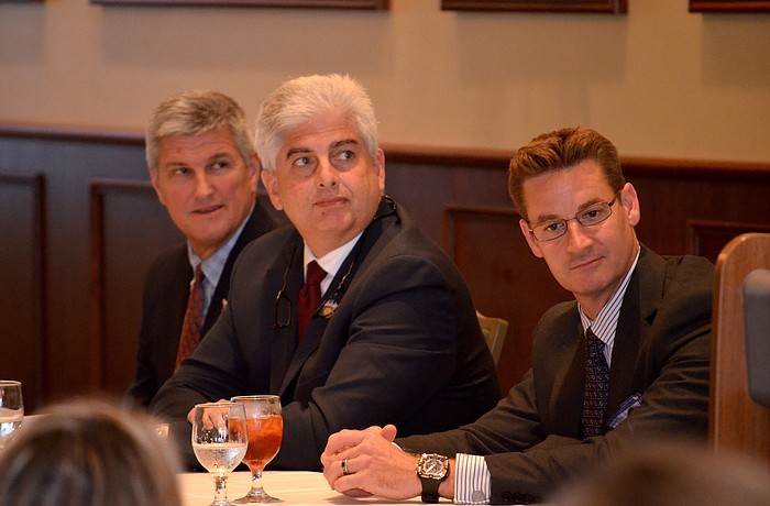Reps. Greg Steube and Julio Gonzalez and School Board Chairman Bob Gause discuss top issues with the Lakewood Ranch Business Alliance.