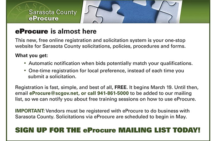 Sarasota County unveiled a new online procurement system in the wake of a procurement scandal last year.