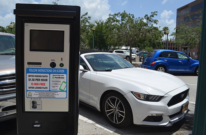 The city has begun installing pay stations on Main Street as it prepares to charge for some spots beginning next month.